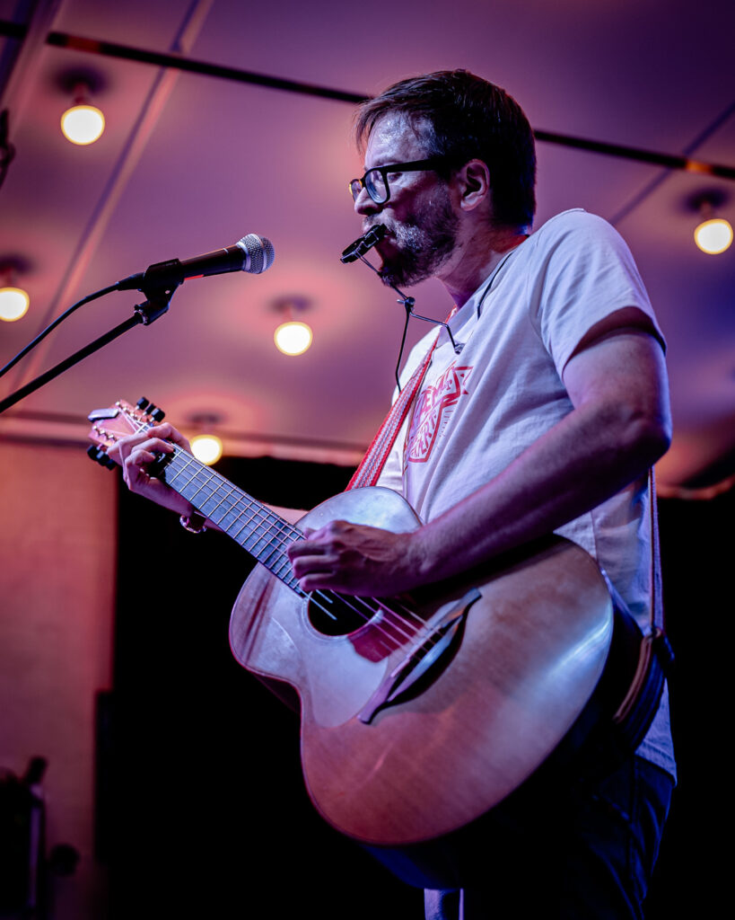 Til en koncert spiller jeg både instrumentalnumre og originale dansksprogede sange. Disse suppleres ofte også af egne arrangementer af kendte sange fra Højskolesangbogen, gamle folkesange, klassiske stykker og jazzstandards. Som regel kommer banjoen også frem på et nummer eller to.