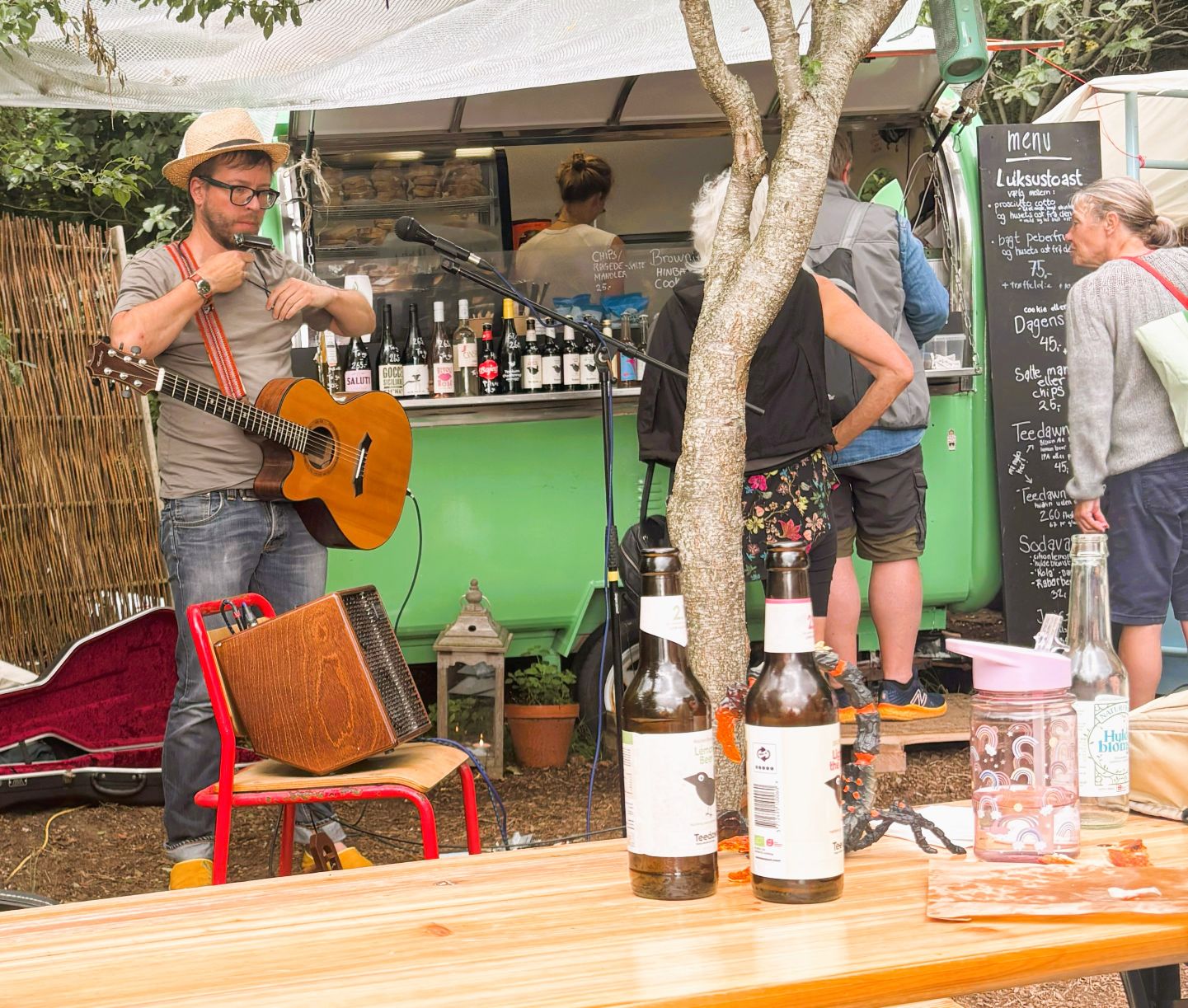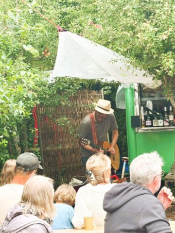 Selv om vejret ikke viste sig fra sin bedste side, blev det alligevel en dejlig koncert på strandcafeen “Elmelunden” ved Kulhuse Strand. Der var masser af mennesker og regnen dukkede kun frem en enkelt gang.