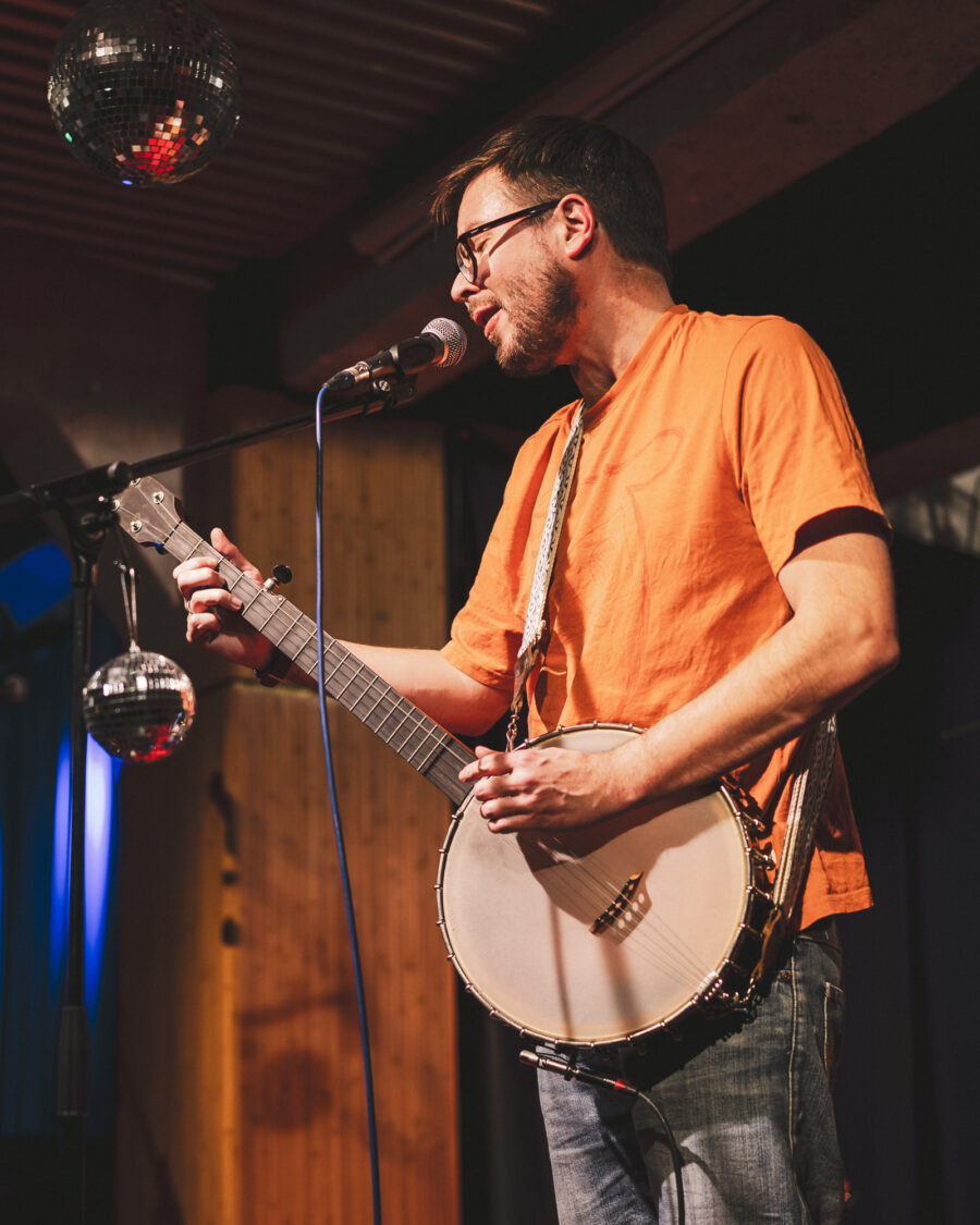 Ved et lykketræf fik jeg fat i en enormt god venstrehåndet banjo, bygget af Leon Ballard fra England. Her en hurtig optagelse af mig, som prøver at lærer at spille på den.